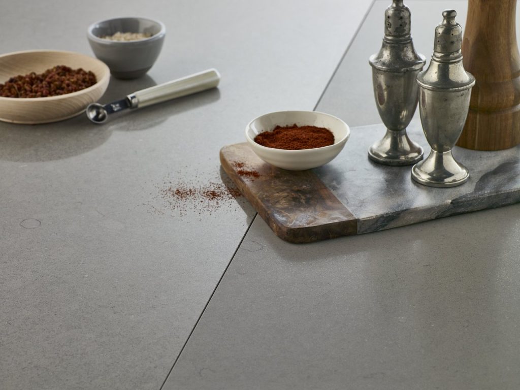 Fossil Gray Quartz offers the visual appeal of marble with low maintenance.