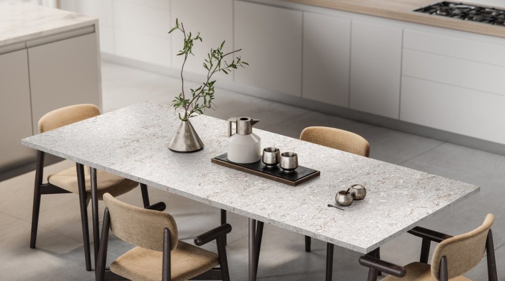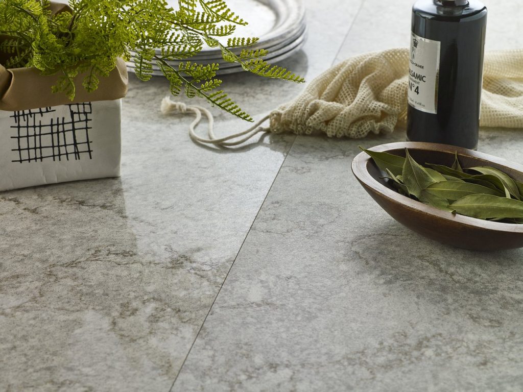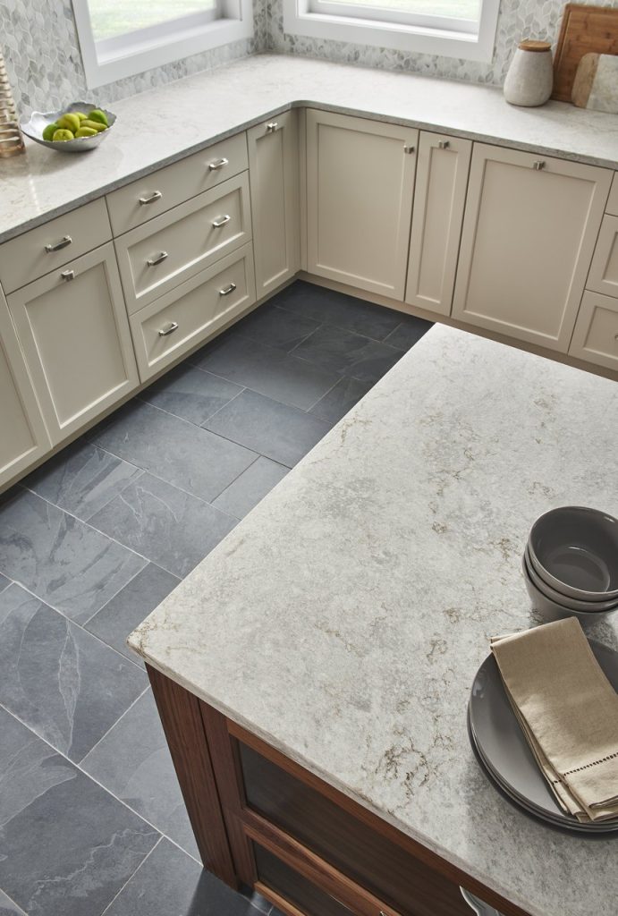 Gray Lagoon Quartz is the perfect blend of cool grays and warm golds.
