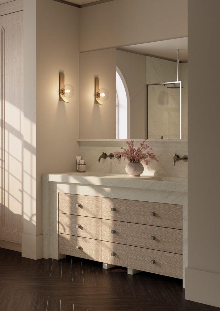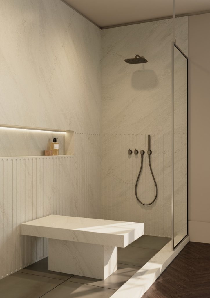 A refined and subdued tonal design defined by cool and warm flowing veins.